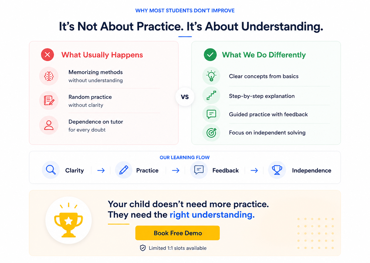 Personalized 1:1 learning focused on clarity and independent problem solving